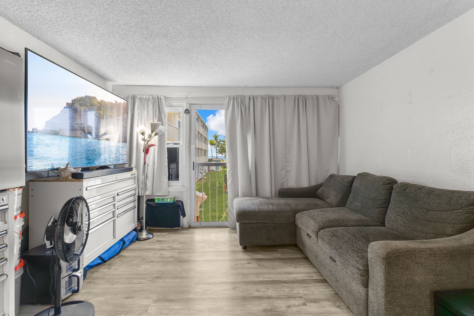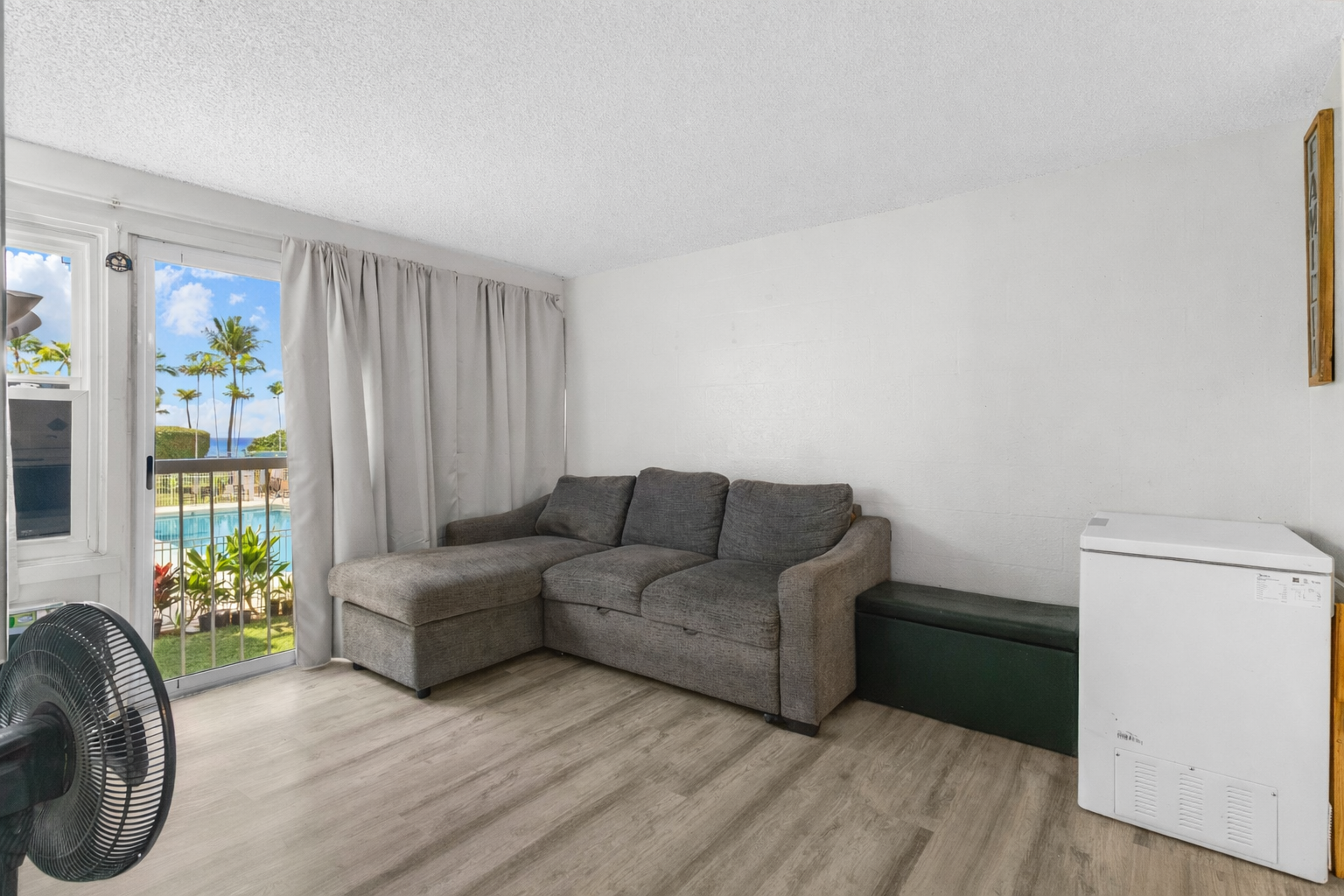 Welcome home to Makaha Surfside, Unit C210! This breezy corner unit overlooks the large, crystal-clear swimming pool, with ocean views just beyond, offering the perfect island backdrop. The unit features tasteful upgrades throughout, including updated kitchen cabinetry, countertops, vinyl tile flooring, and modern improvements to the bathroom as well. Conveniently located with easy access from the parking structure, pool, mailbox, and onsite laundry facilities, this unit offers an easy and comfortable lifestyle. Makaha Surfside provides resort-style amenities including secured entry, 24-hour security patrol, BBQ area, sauna, exercise room, and swimming pool. Enjoy coastal living in this well-maintained unit. Schedule your showing today!